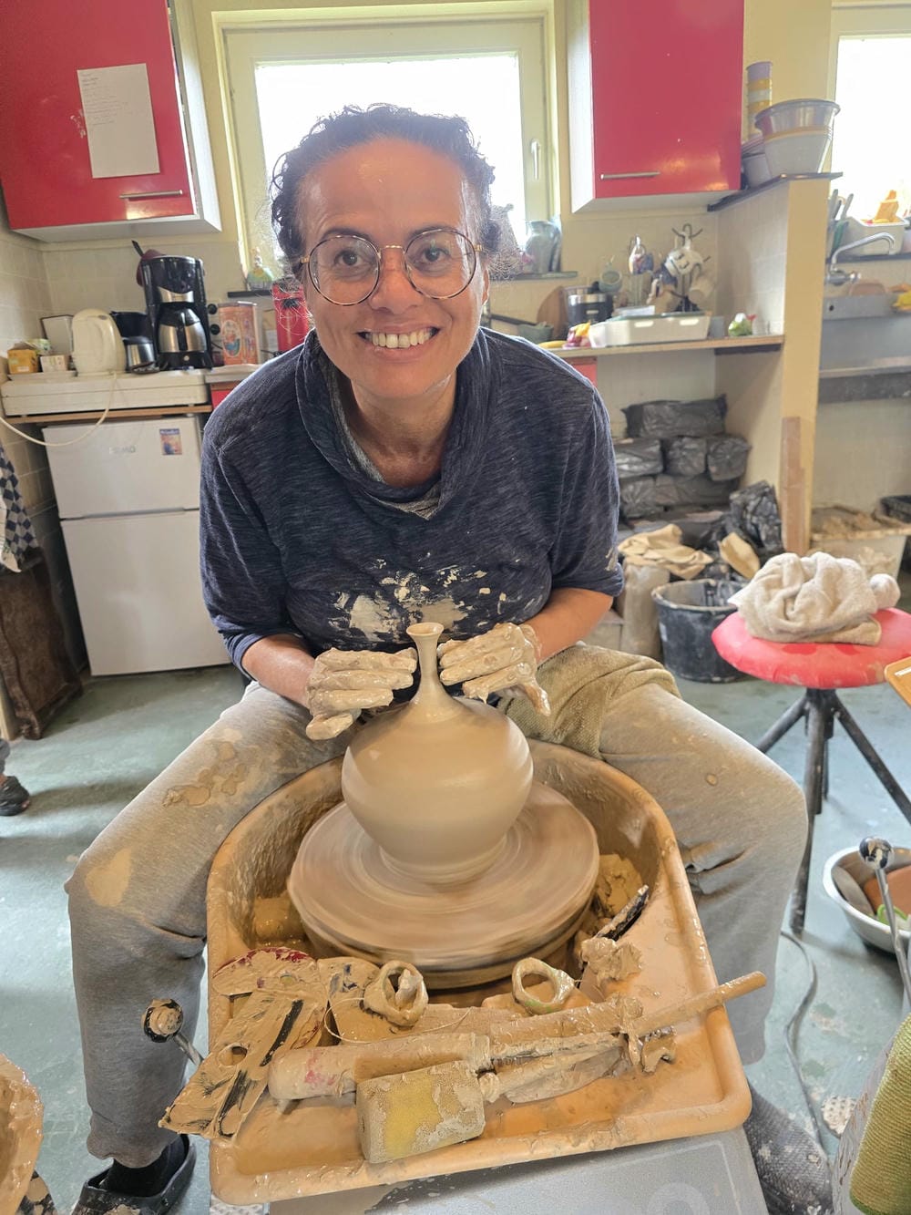 On Rhodes, a fully equipped studio will be built by the end of 2025. Two kilns, eleven wheels and all tools are already in place. From April 2026, I will host pottery retreats there at The Dream House — my Greek-style B&B, in the place where it all began for me, where I raised my two children, and where I lived and worked with joy for 21 years.
