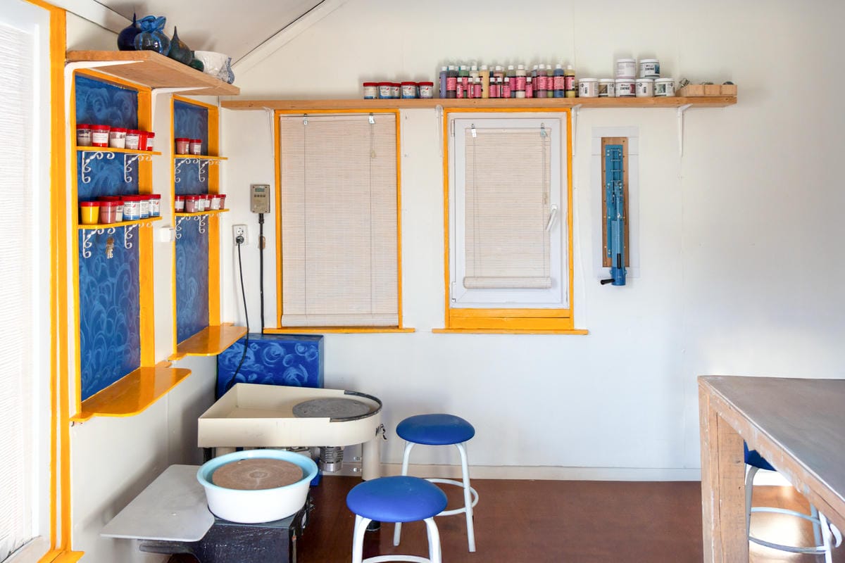 If I were to do it again, I would think about the future even sooner. When I built my studio, I was primarily thinking about my own work. But since then, the studio has been converted into a classroom: there are now five potters' wheels and a large table for collaborative work, decorating, and glazing.