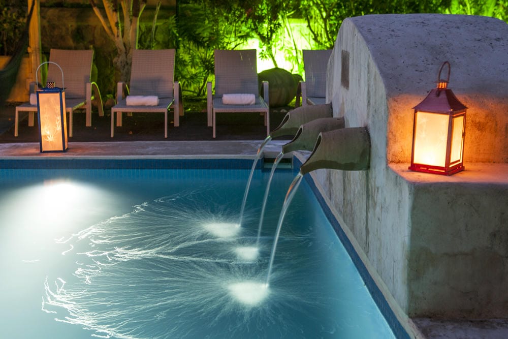 The large, green garden is an oasis. Mature trees provide shade during the hot summer months, while flowers add color year-round. The heated swimming pool takes center stage, surrounded by terraces and nooks where you can retreat or socialize.