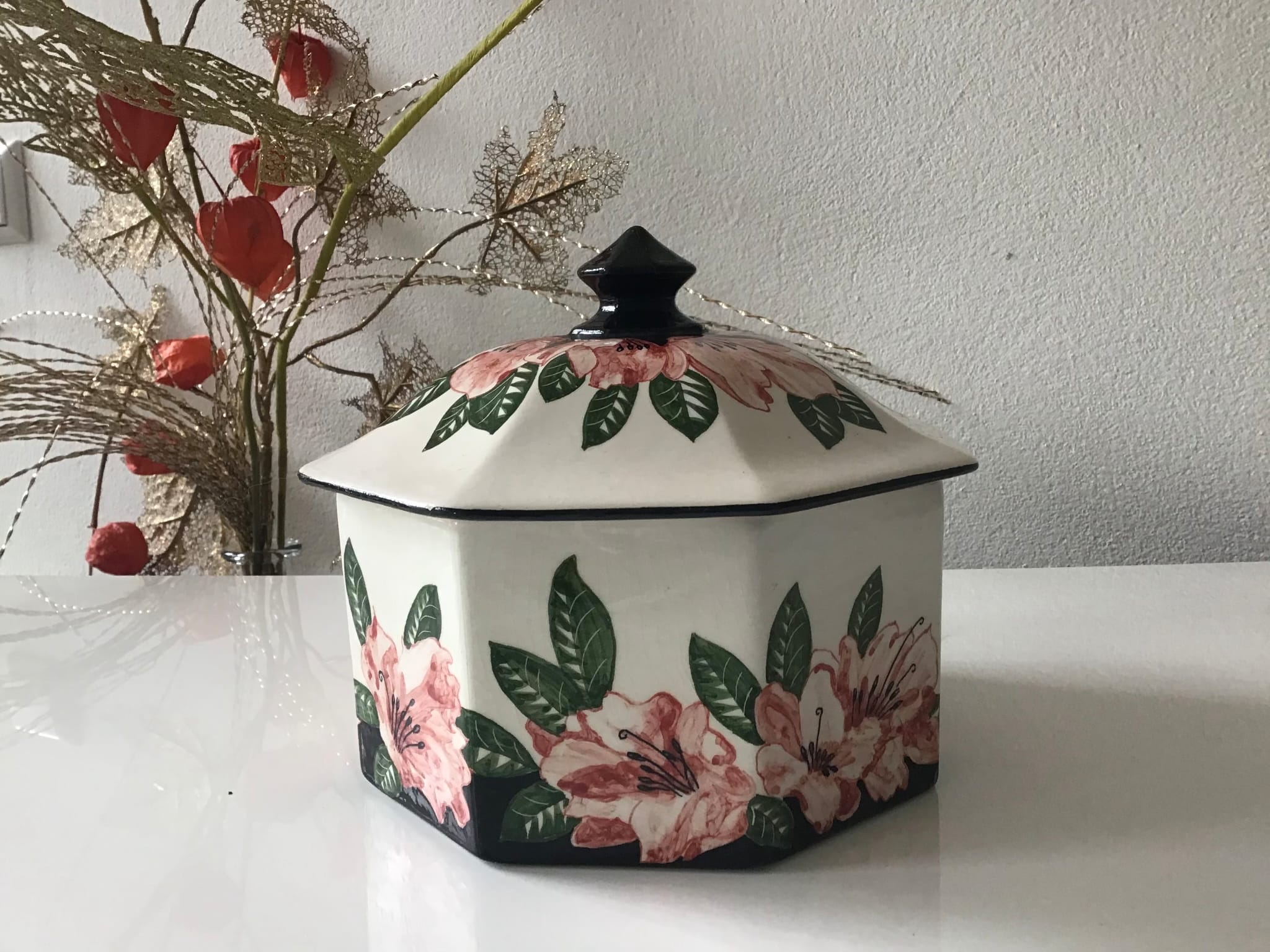 All designs are my own. After painting, the piece is glazed and fired in a ceramic kiln at 1040°C.